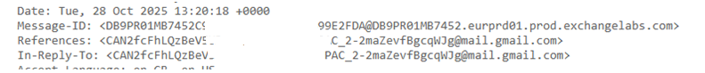 Is there a way to retrieve or access email headers, such as Message-ID and References, in Genesys Cloud?
