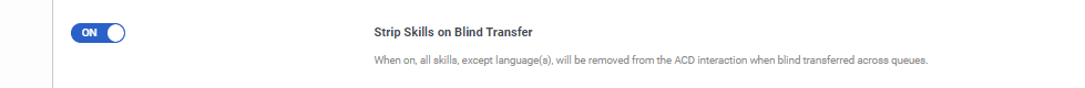 Please note, the comment regarding Stripping Skills on Blind Transfer was a question, not a suggestion :-) Lei posted "Also in transfer calls, agent skill proficiency seems not factor into agent selection, even we use Best available routing method." and I suggested checking the setting, not to change it.