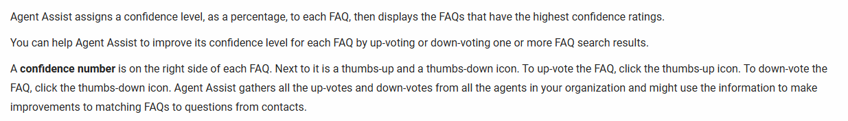 In the old Agent Assist, the thumbs up/thumbs down feedback provided assisted with adjusting the confidence rating of the article that populated, as shown below: