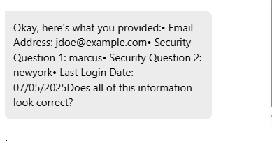 1 - I collect several items from the customer and then present them back for confirmation. I need each item to display on a separate line (just as if a real agent pressed shift+enter). I have been able to get bullets to be visible but cannot get them to be on different lines. I've tried explicitly including \n or \r\n, I've given instructions at the top as well as part of the specific prompt, I've tried to include Unicode character U+2028, I've made the prompt fixed and dynamic, and maybe a few other ideas, all with no luck.