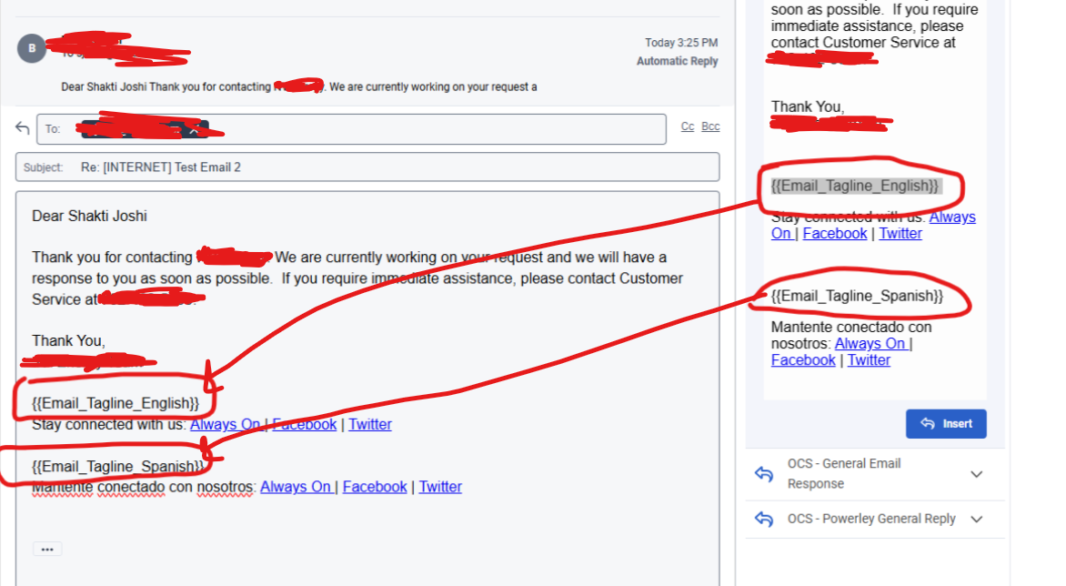 For this to work you need save Email_Tagline_English and Email_Tagline_Spanish as Participant Data, then it will work when you add Canned Responese to your conversation.