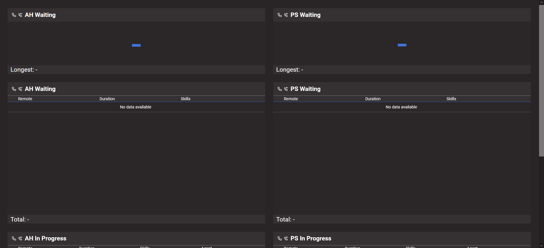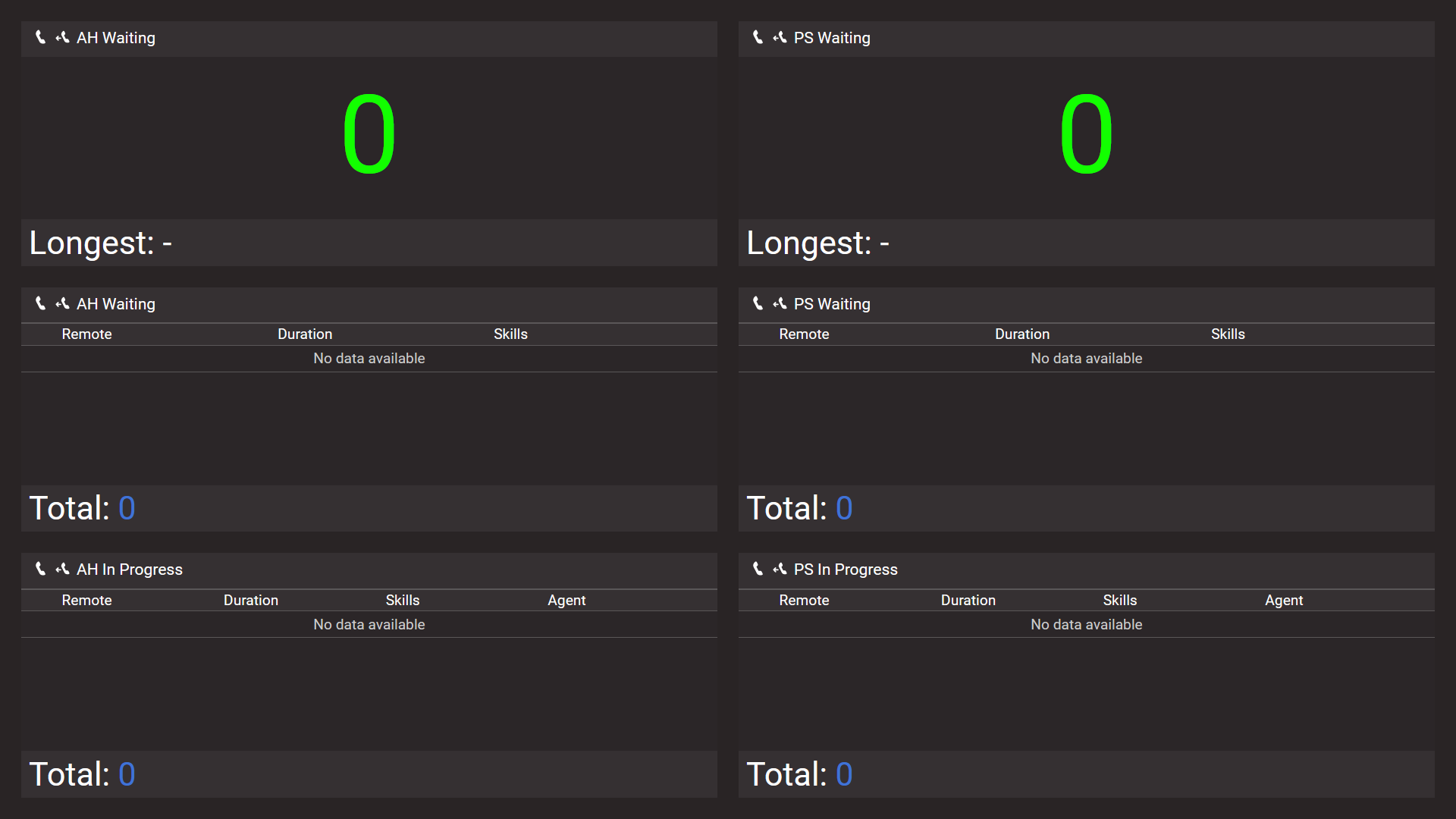 The dashboard setup would fit nicely in a single page, and when no interactions waiting, it would always show '0' in green, and when interactions are waiting, it would be in red.