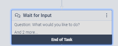 I have a Call Task block to a reusable task where the Wait for input block is used to ask them an open ended 'What is your location'. Since the Wait for Input block only ends with 'end of task', I am expecting it to go back to the starting bot/task that called it and go down the default output path. However, when I try to test the bot, it just repeats the location question - as if the reusable task is not completing and returning to the starting bot and going down the default output path. it just restarts the reusable task over and over. It would appear that it is recognizing my intent, because it isn't asking me confirmation prompts unless i type something vague for the location.