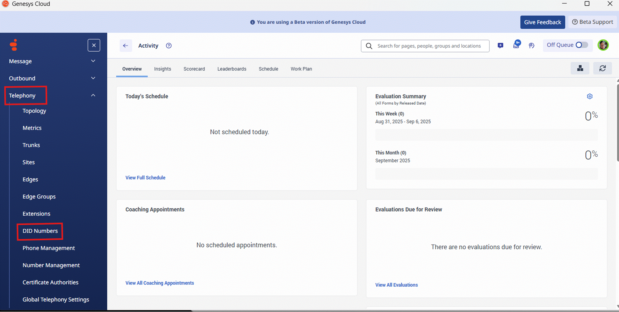 When I select Digital and Telephony, then Telephony, then DID Numbers. The Activity page is displayed. I can choose other options in the Telephony section like Phone Management or Extensions and those are correct. Screen shot below of what happens when I select DID Numbers. This feature worked when we used it previously but now has this issue.