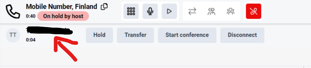The consult call on Agent A's screen shows Agent B's name even though it is Agent C who is on the line. Example below.