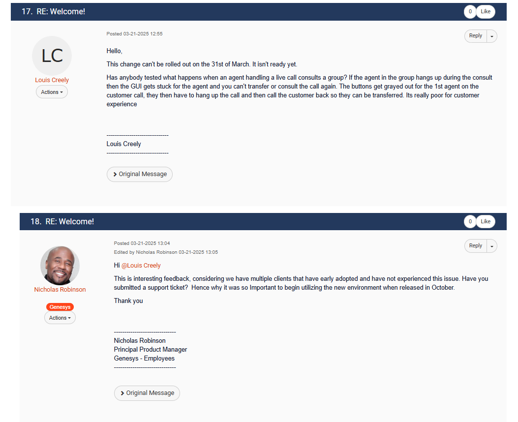 Genesys have been aware of this issue for 4 months now, i'm not sure what's going on anymore. Are we going to be forced over to something that has a serious flaw?