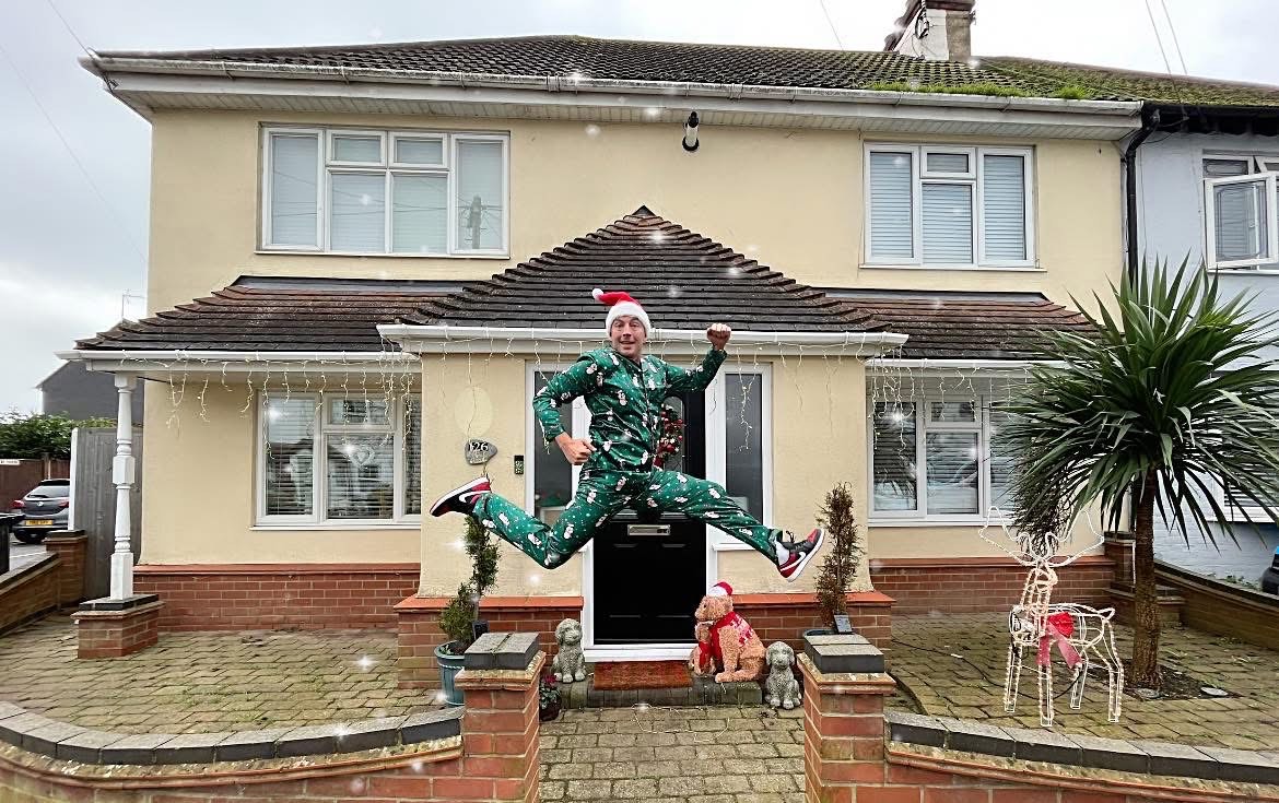 Then tradition in our house is the Christmas Jump outside in our PJ's: