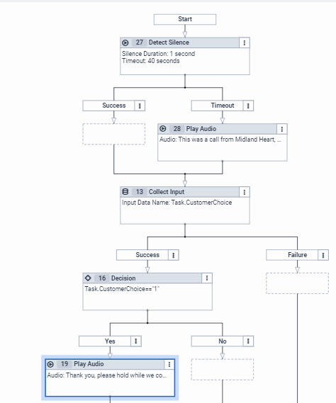 we are starting the dialler and then the customer is called the and a message is played and they are then asked to press the number 1 to connect the call however if they don't press the 1 button the call disconnects.