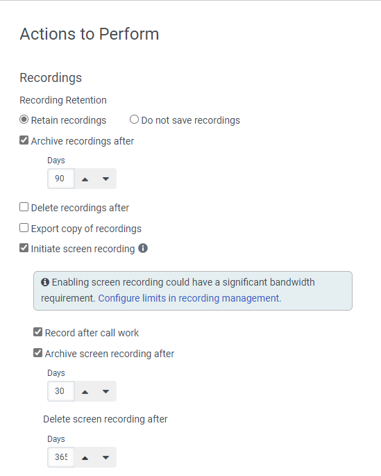 Would I just remove the check from "Archive recordings after" and then check the "Delete recordings after" and put 90 days in there? I would then also update the section for "Delete screen recording after" to 90 days as well from 365.
