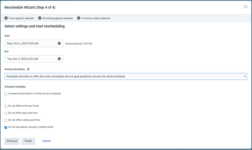 I'm trying to ensure our breaks and lunches are at the optimal times after having added sickness/leave but it's not changing anything whereas it was before. Whenever I seem to do a reschedule now it only seems to change the forecast.