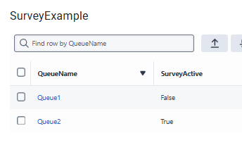 Here I have a simple data table with queue names and a boolean if the survey should be active