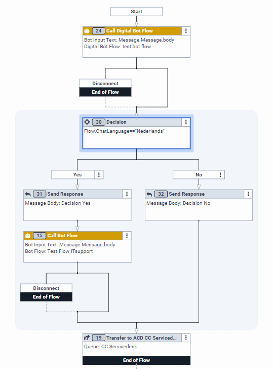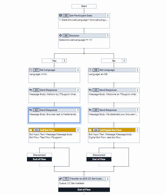 I have created an inbound message flow with supported languages nl-NL, en-GB, en-US.