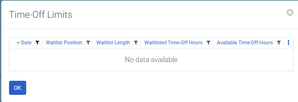 Subject: Time off Request not displaying the Time off Limit