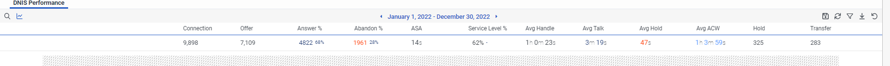 I would suggest the DNIS Performance View and set the timeframe from 1/1/2022 to 12/31/2022. The top summary should show you all the calls handled for all of 2022. You can filter for inbound and/or outbound.