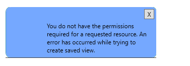 Subject: "You do not have full permission for the requested services. An error has occurred while trying to create saved view."